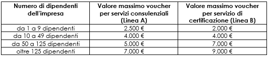 È previsto un VOUCHER A FONDO PERDUTO fino all’80% delle spese ammissibili, variabile in relazione al numero di dipendenti delle sedi operative/unità produttive:
