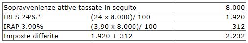 Nella dichiarazione dei redditi si dovrà, poi, effettuare una ripresa in aumento per le imposte differite. Nell’esercizio x+1 l’impresa dovrà assoggettare a tassazione 1.600 euro di sopravvenienze, con la conseguenza di dover: